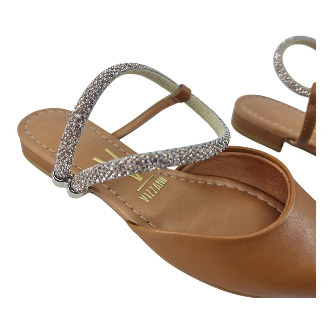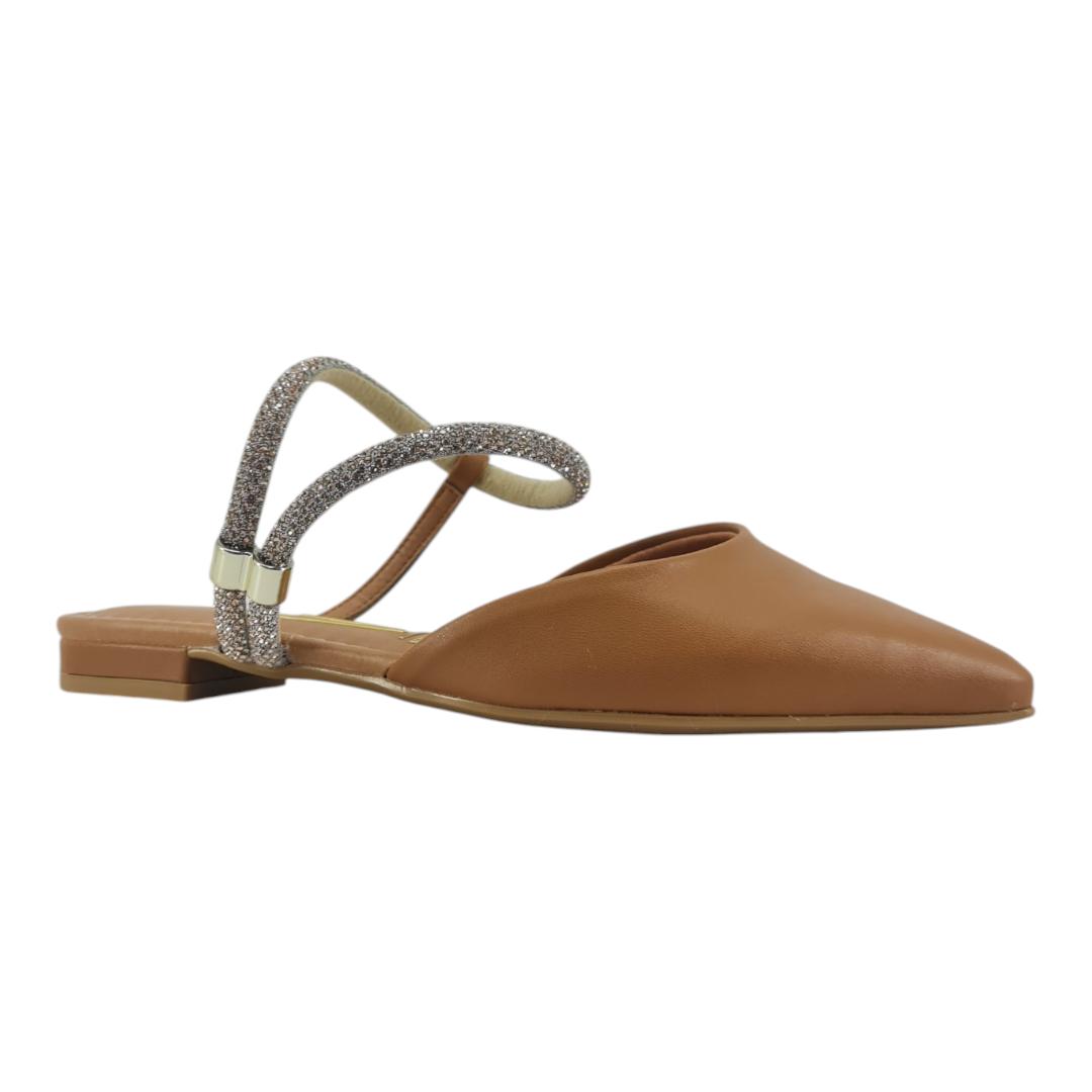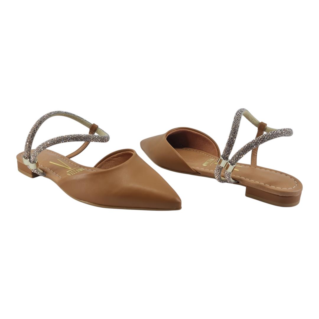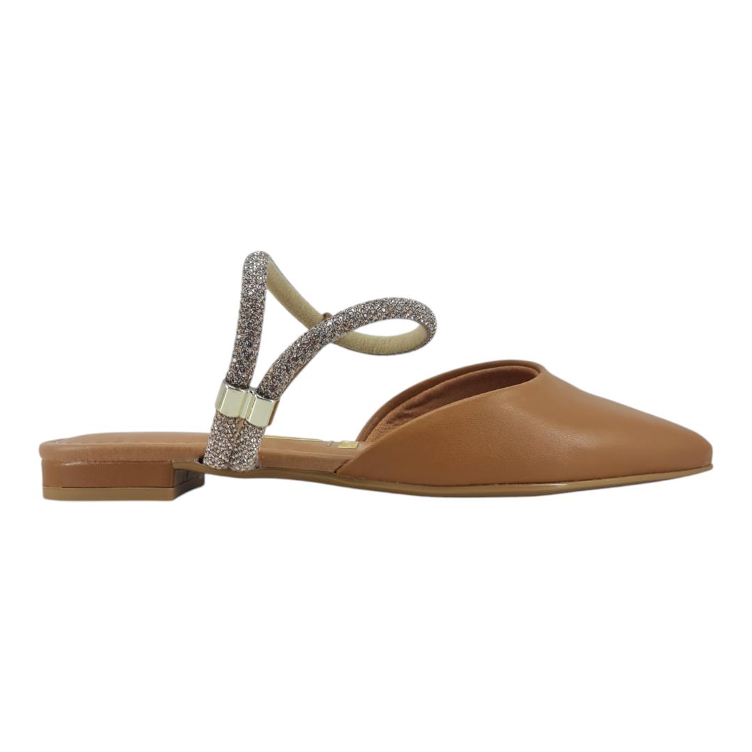 Com bico fino e acabamento sofisticado, o modelo traz detalhe em tiras brilhantes com aplicação metálica que dão um toque moderno e delicado. Versátil, combina facilmente com looks casuais ou mais formais, garantindo charme em qualquer ocasião.
