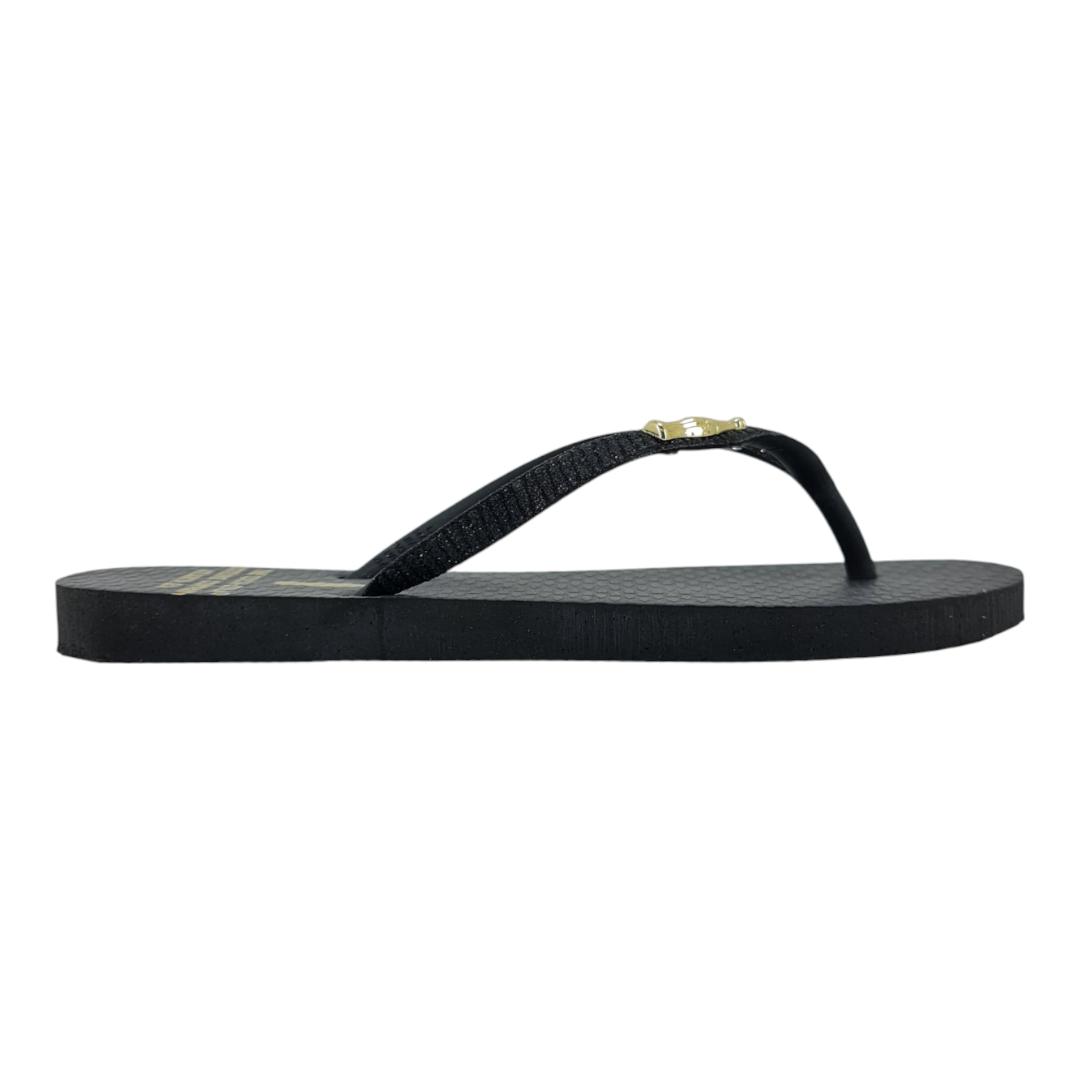 Moderno e cheio de personalidade, o chinelo feminino Coca-Cola traz estampa icônica da marca em fundo preto, com visual urbano e atual. Possui tiras pretas confortáveis com detalhe metálico dourado, que acrescenta um toque de sofisticação ao modelo. Leve, prático e ideal para o dia a dia, combina perfeitamente com looks casuais e momentos de lazer.