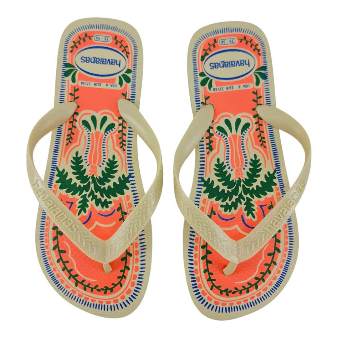 O chinelo feminino Havaianas traz estampa exclusiva e colorida, perfeita para dar um toque alegre ao look do dia a dia. Confeccionado em borracha de alta qualidade, oferece maciez ao caminhar, solado antiderrapante e tiras anatômicas com o logo Havaianas em relevo, garantindo segurança e conforto.
