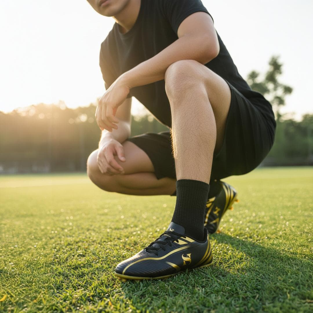 Solado com travas fixas, proporcionando excelente tração e estabilidade no gramado