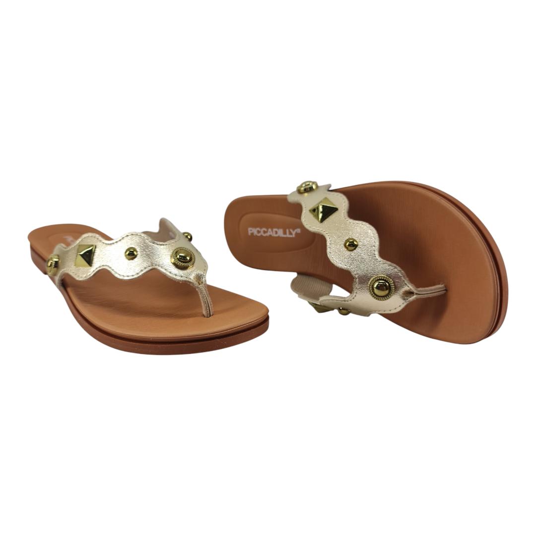 A rasteira feminina Piccadilly combina conforto e estilo em um só modelo. Com acabamento metalizado e detalhes em aplicações que dão um toque moderno e elegante, ela é perfeita para compor looks leves e sofisticados nos dias quentes. O solado é macio e leve, garantindo bem-estar ao caminhar, ideal para o dia a dia ou ocasiões casuais.