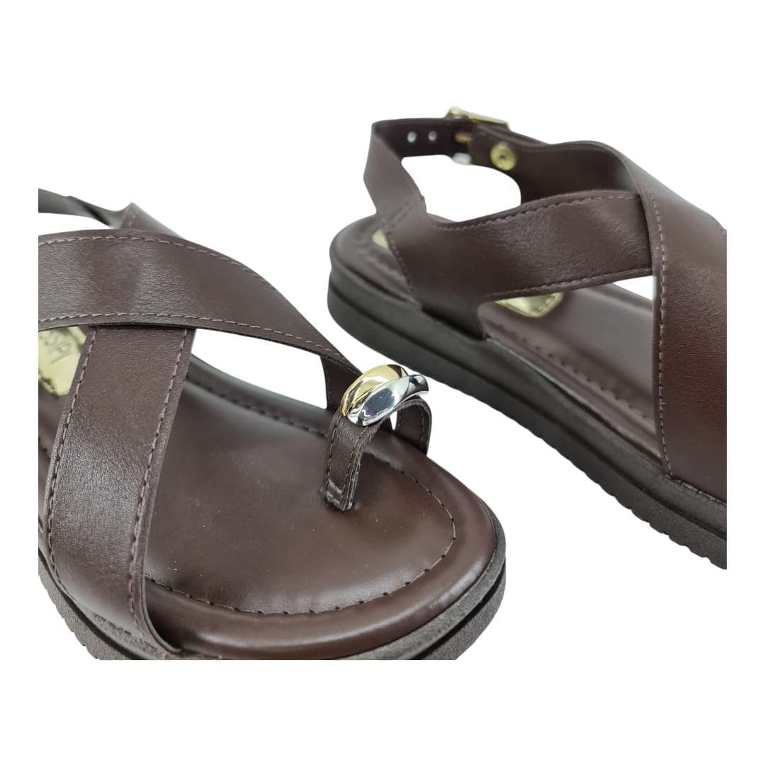 Sandália Mississipi é fabricada com materiais de qualidade com palmilha macia e solado leve antiderrapante garantindo conforto e segurança para os seus pés. Ela possui tiras largas em couro sintético marrom, detalhe em metal no dedo, fechamento lateral com fivela e solado macio que garante conforto no dia a dia.
