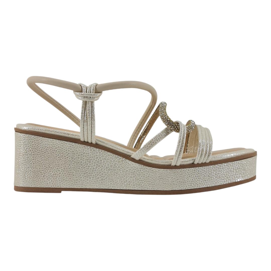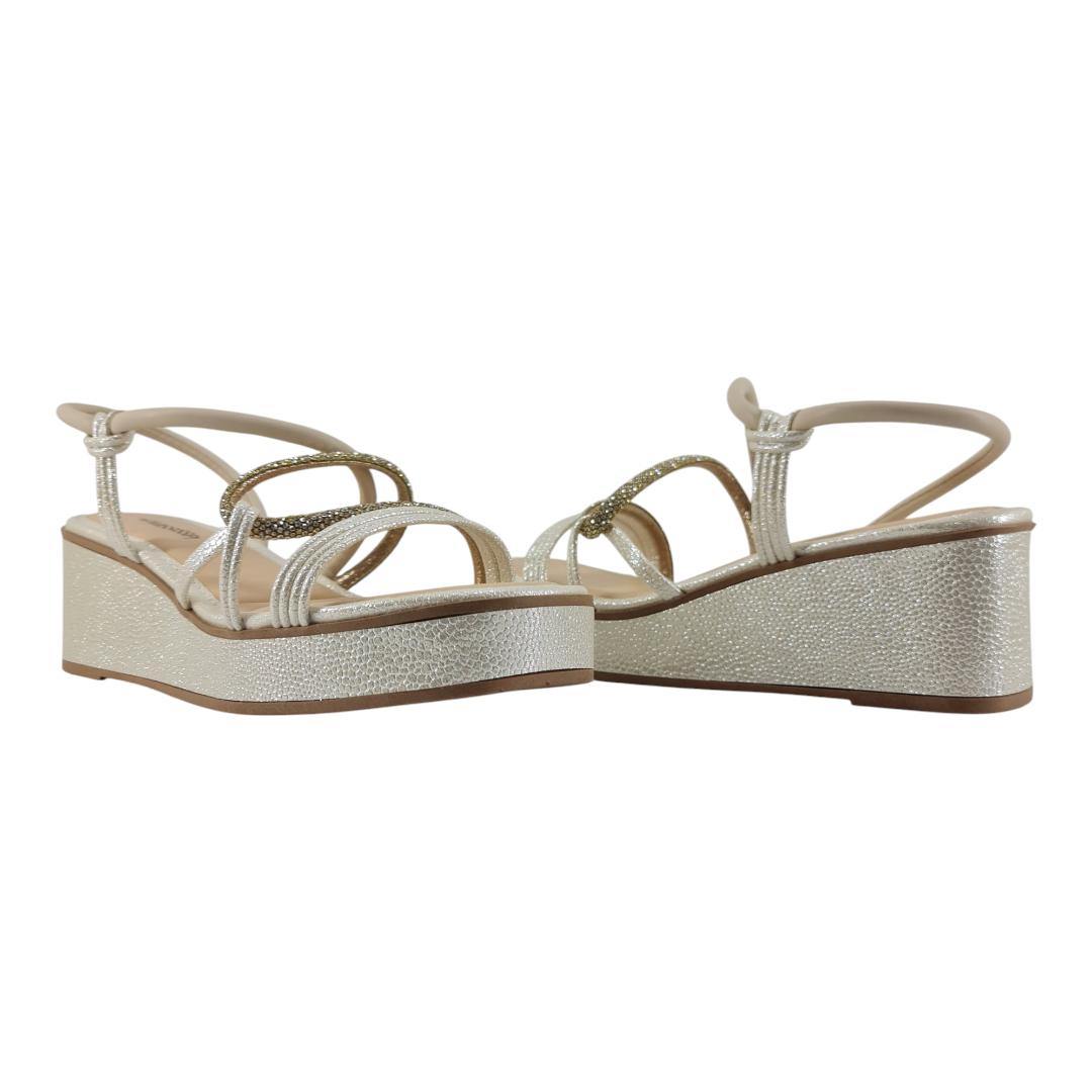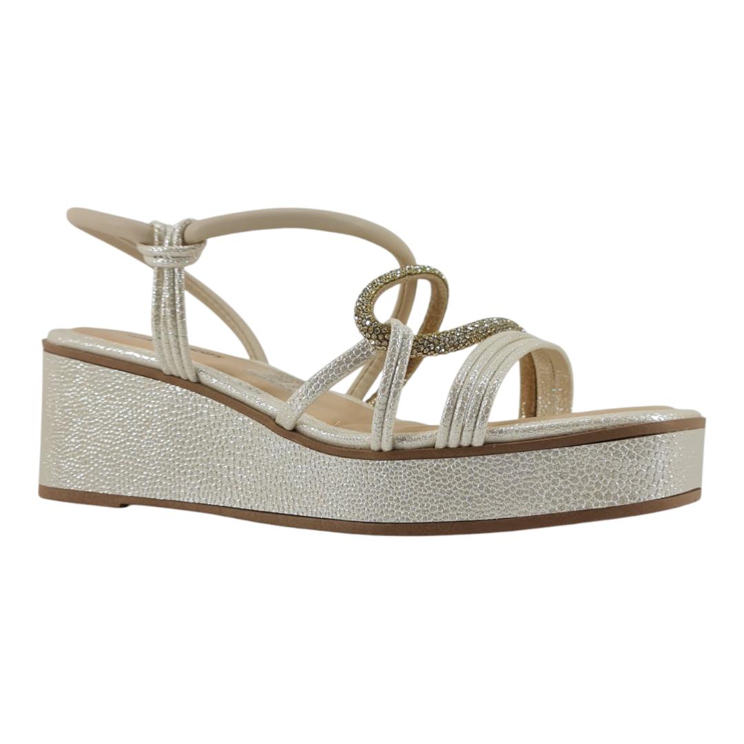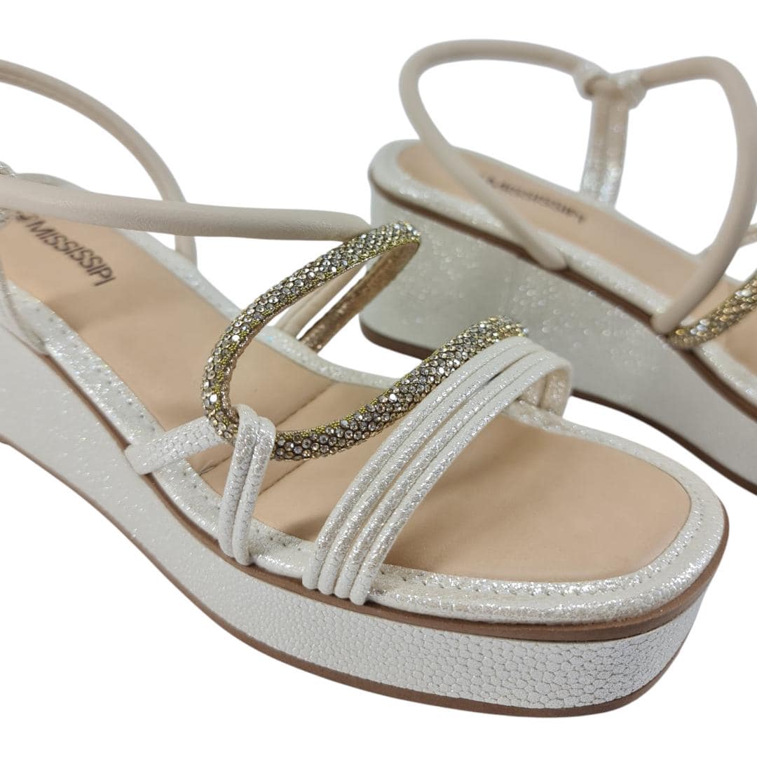 A sandália feminina anabela Mississipi é a escolha certa para quem busca elegância e conforto em um único calçado. Com salto anabela revestido em textura brilhante e tiras delicadas, o modelo traz um toque sofisticado para qualquer ocasião. O detalhe com pedrarias no cabedal adiciona charme e feminilidade, enquanto o fechamento garante ajuste perfeito aos pés. Ideal para eventos, festas ou para elevar o visual do dia a dia.