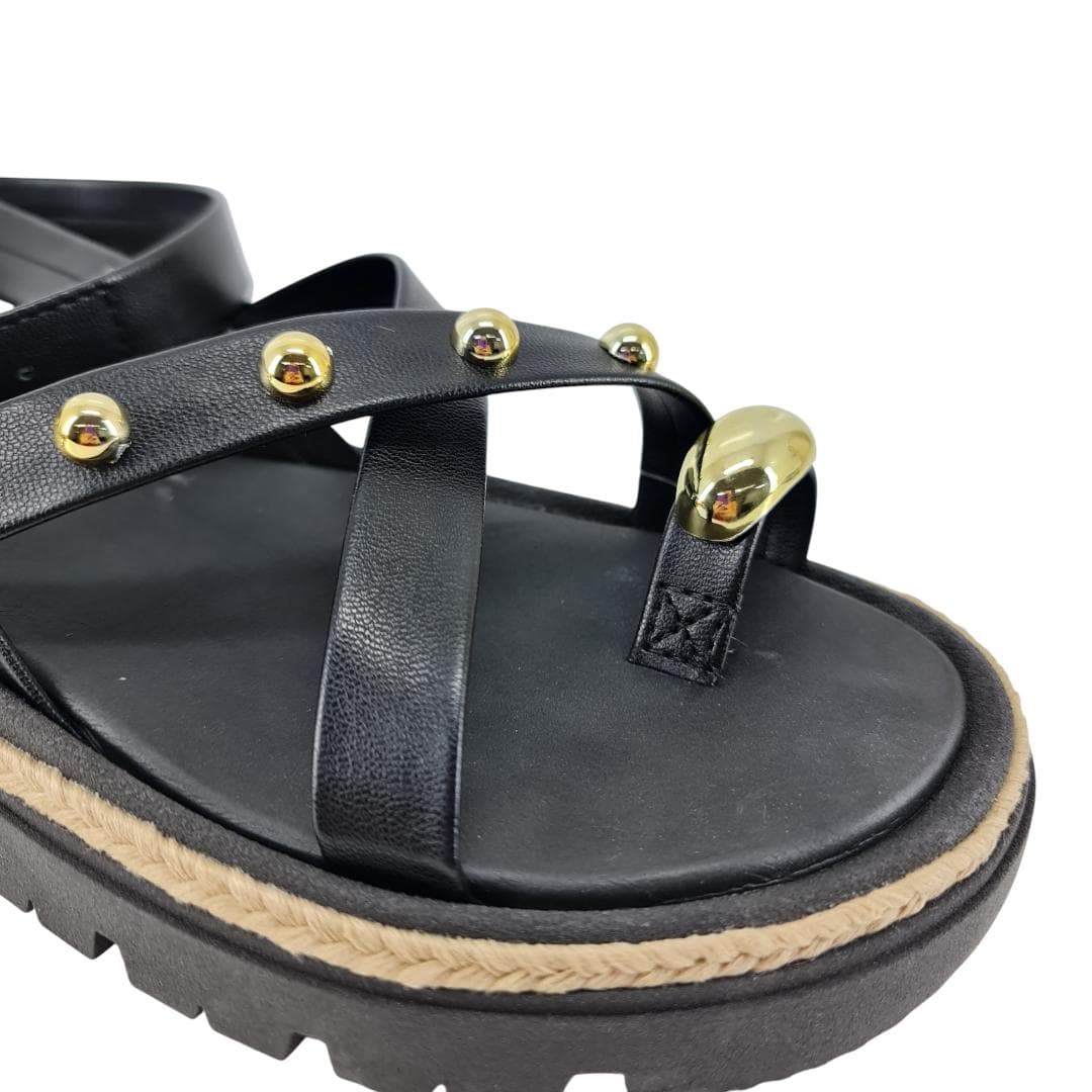 Essa sandália anabela Moleca traz um visual moderno com tachas douradas, dando aquele toque de elegância que transforma qualquer look. As tiras macias garantem conforto no calce, enquanto a anabela oferece estabilidade e uma altura ideal para usar o dia todo.
