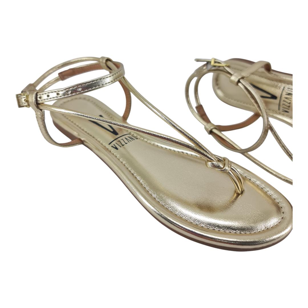 Um clássico que nunca sai de moda! A rasteira Vizzano traz design minimalista e elegante, com acabamento metalizado que valoriza qualquer look. Possui tiras finas com detalhe em nó e fechamento ajustável com fivela, garantindo conforto e segurança ao caminhar. Perfeita para compor produções casuais ou até looks mais sofisticados nos dias quentes.