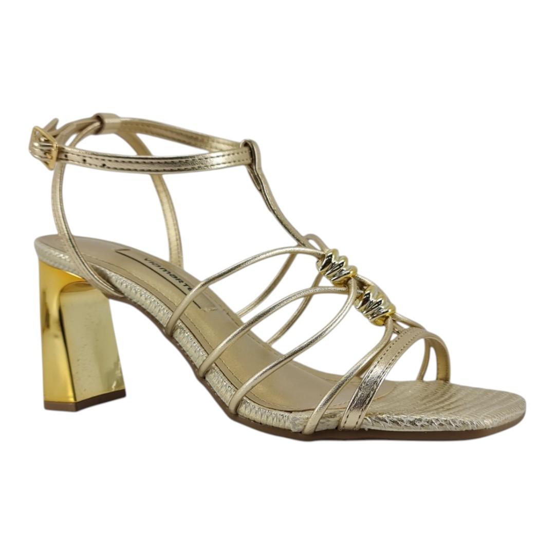 Elegância e sofisticação em cada detalhe! Essa sandália traz tiras finas delicadas, acabamento metalizado dourado e salto bloco que garante conforto e estabilidade sem abrir mão do charme. Perfeita para festas, eventos especiais ou para dar um toque glam ao seu look.