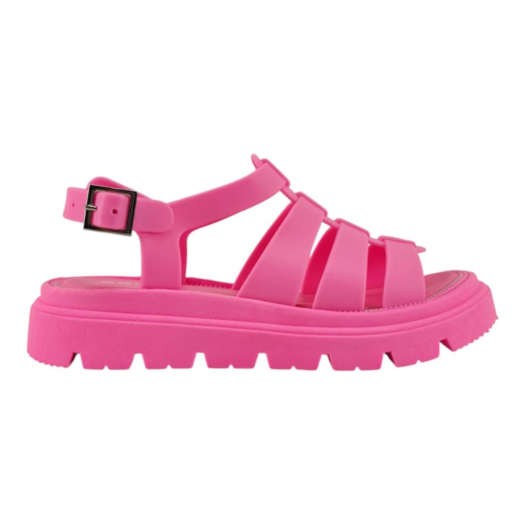 Design estilo papete fisherman, com tiras largas e fechamento lateral em fivela.