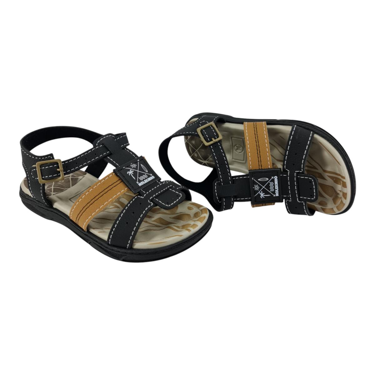 Com design moderno em preto e detalhes em marrom, ela combina estilo e praticidade. Possui fechamento com fivela, palmilha macia estampada e solado antiderrapante, garantindo conforto e segurança em cada passo.