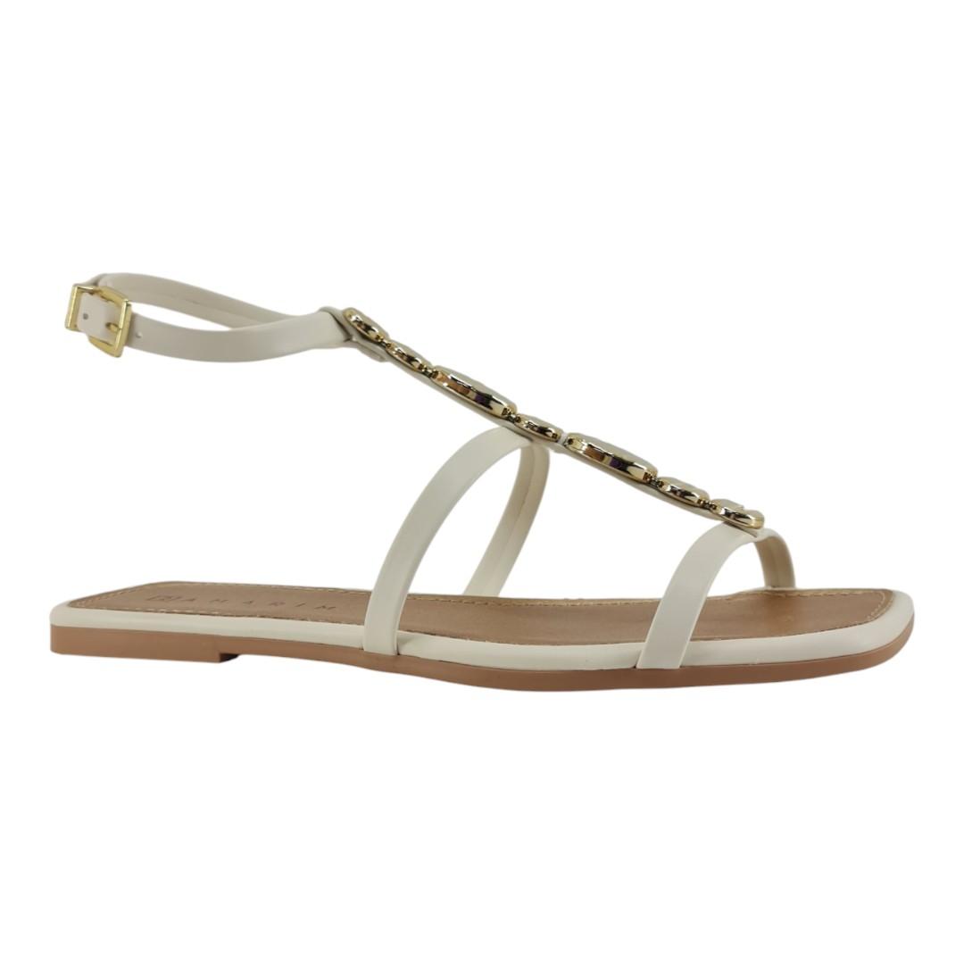 A Sandália Rasteira Ramarim une elegância e conforto em um design leve e versátil. Produzida em tom off white, conta com tiras delicadas e aplicação de corrente dourada que traz um charme sofisticado ao modelo. O fechamento com fivela lateral garante praticidade e melhor ajuste, enquanto o solado baixo proporciona conforto para o uso diário.