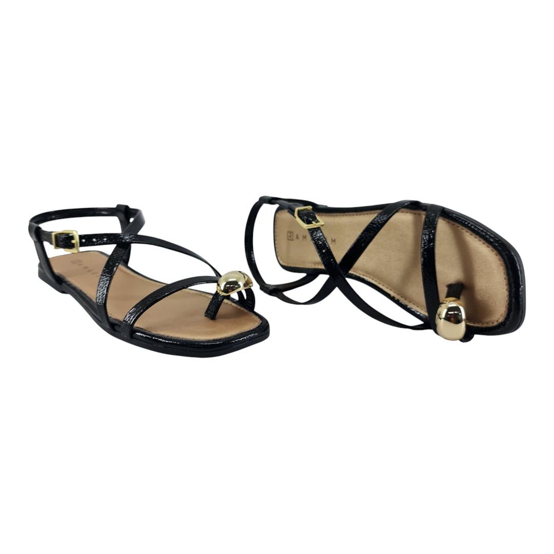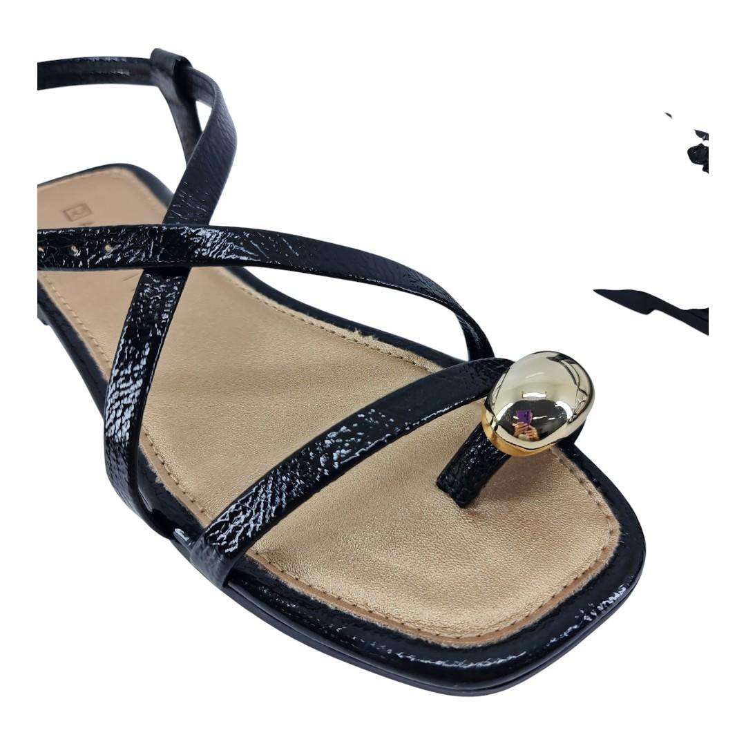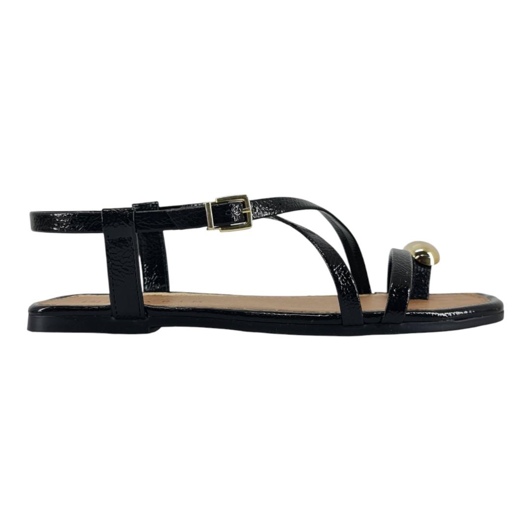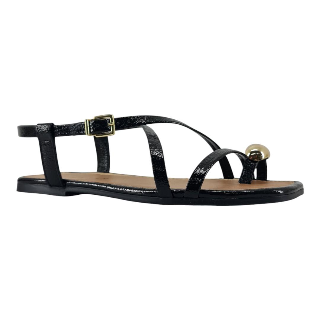 A Sandália Rasteira Ramarim é perfeita para quem busca praticidade e estilo em um só calçado. Com tiras finas em verniz preto e detalhe sofisticado em dourado na parte frontal, ela garante um toque moderno e elegante ao look. O fechamento lateral com fivela oferece melhor ajuste e segurança, enquanto o solado baixo proporciona conforto para o uso no dia a dia.