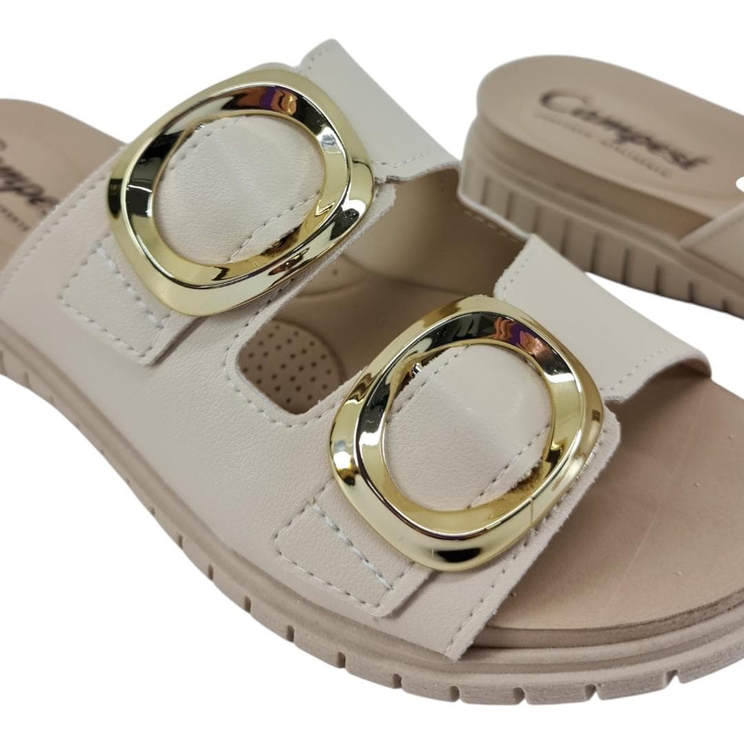 O Slide Campesí Flatform Bege é a união perfeita de estilo e conforto para a mulher moderna. Com seu design minimalista e sofisticado, ele apresenta duas fivelas metalizadas sobre o pé, que adicionam um toque glamoroso e elevam qualquer um dos seus looks. Ideal para o dia a dia e momentos de lazer, este slide é a escolha certa para quem busca um calçado que combine com tudo e sempre a deixe elegante.