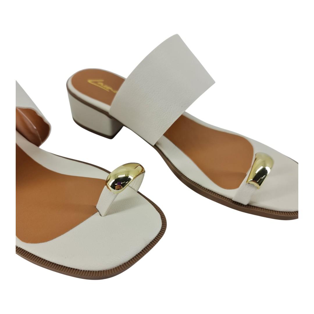 Tamanco feminino de salto baixo é uma opção prática e confortável para o dia a dia, sem perder a elegância. Ele combina bem com looks casuais ou sociais leves, podendo ser usado tanto no trabalho quanto em momentos de lazer. Com detalhe dourado no dedo deixa o look mais elegante e cheio de estilo.