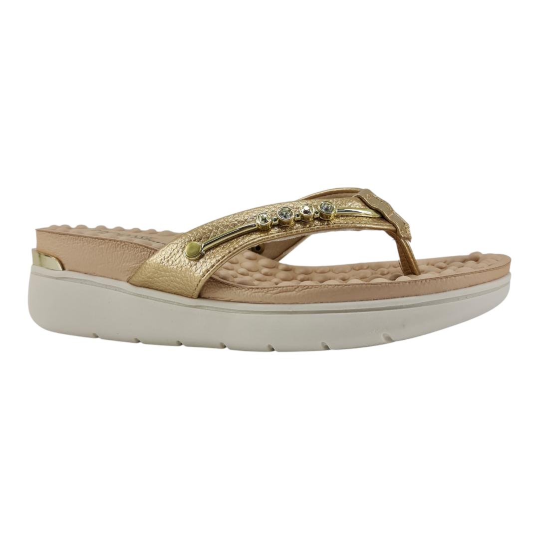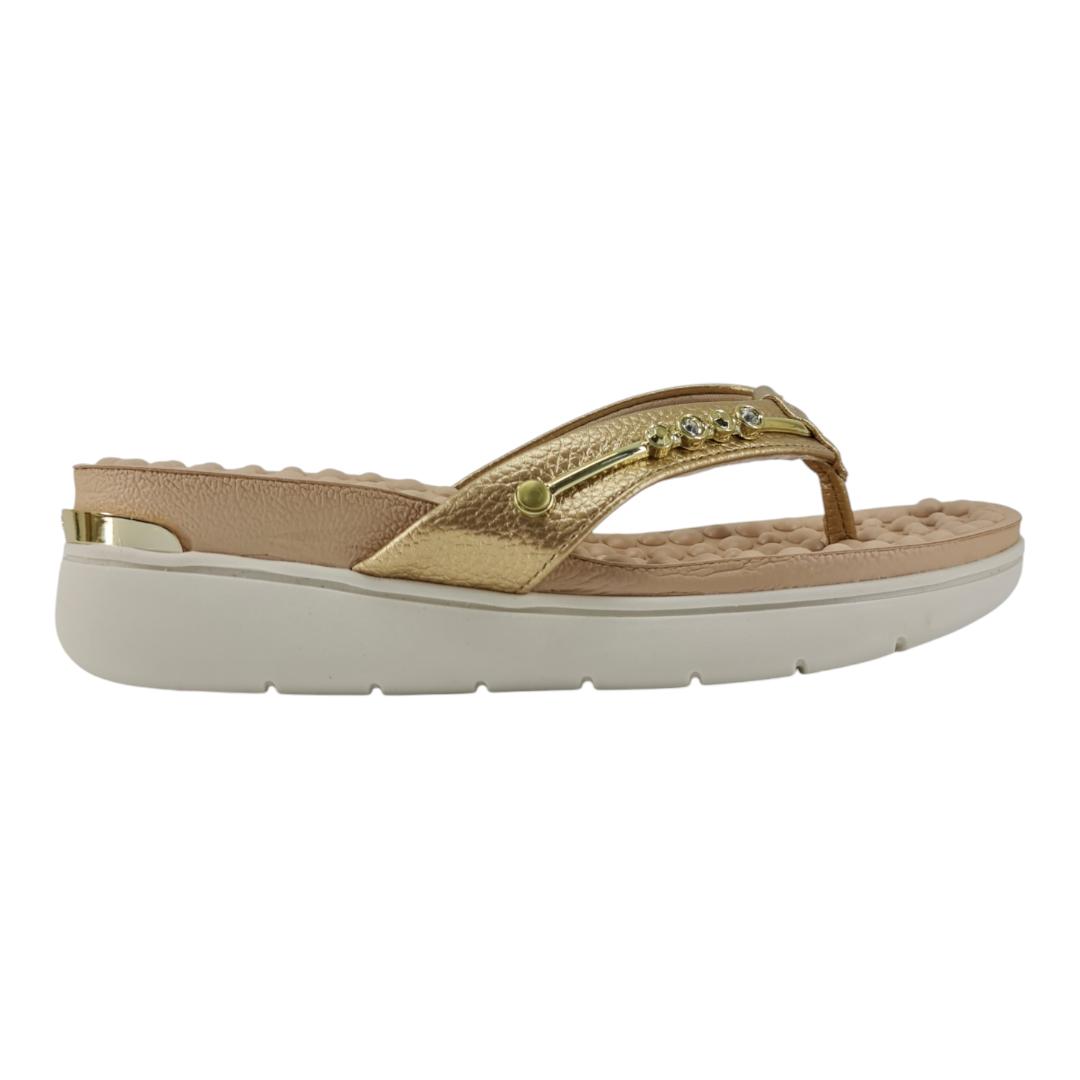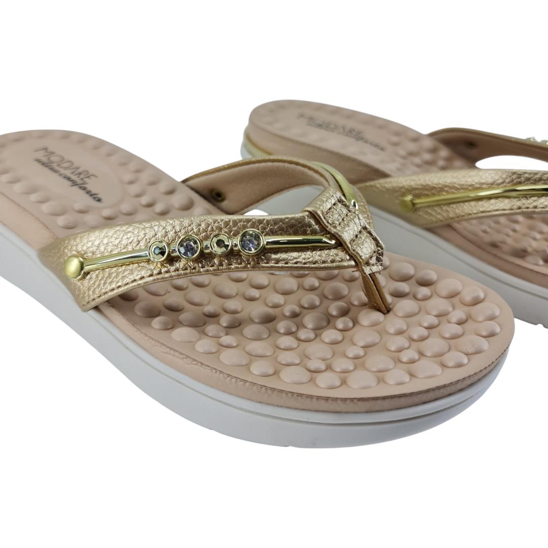Com tiras douradas que trazem brilho na medida certa e aplicações delicadas, esse modelo Modare é ideal para quem ama praticidade sem perder a elegância.