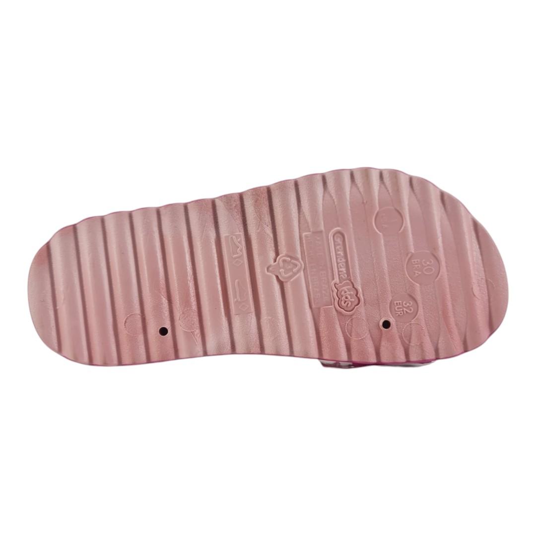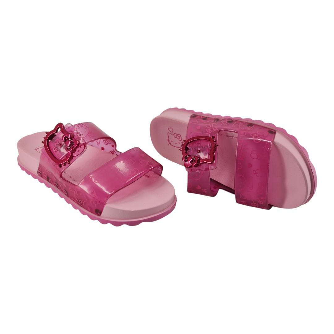 Super fofo e estiloso, vem em tom rosa translúcido com detalhe de fivela em formato da personagem. Além do charme, oferece conforto e praticidade para o dia a dia das pequenas.