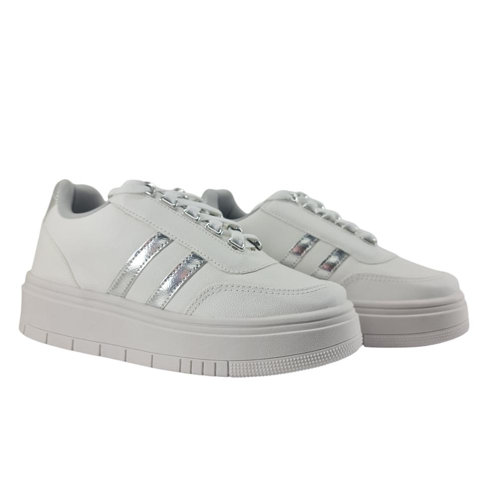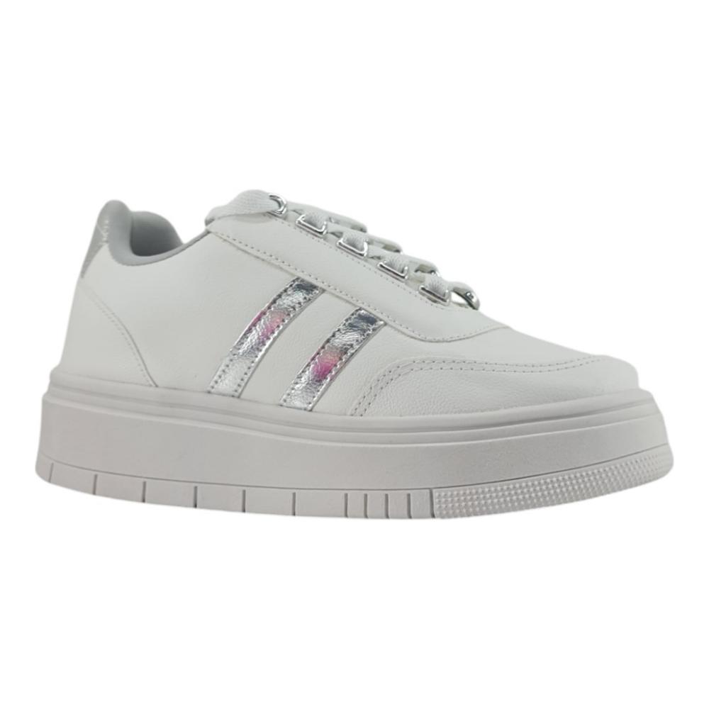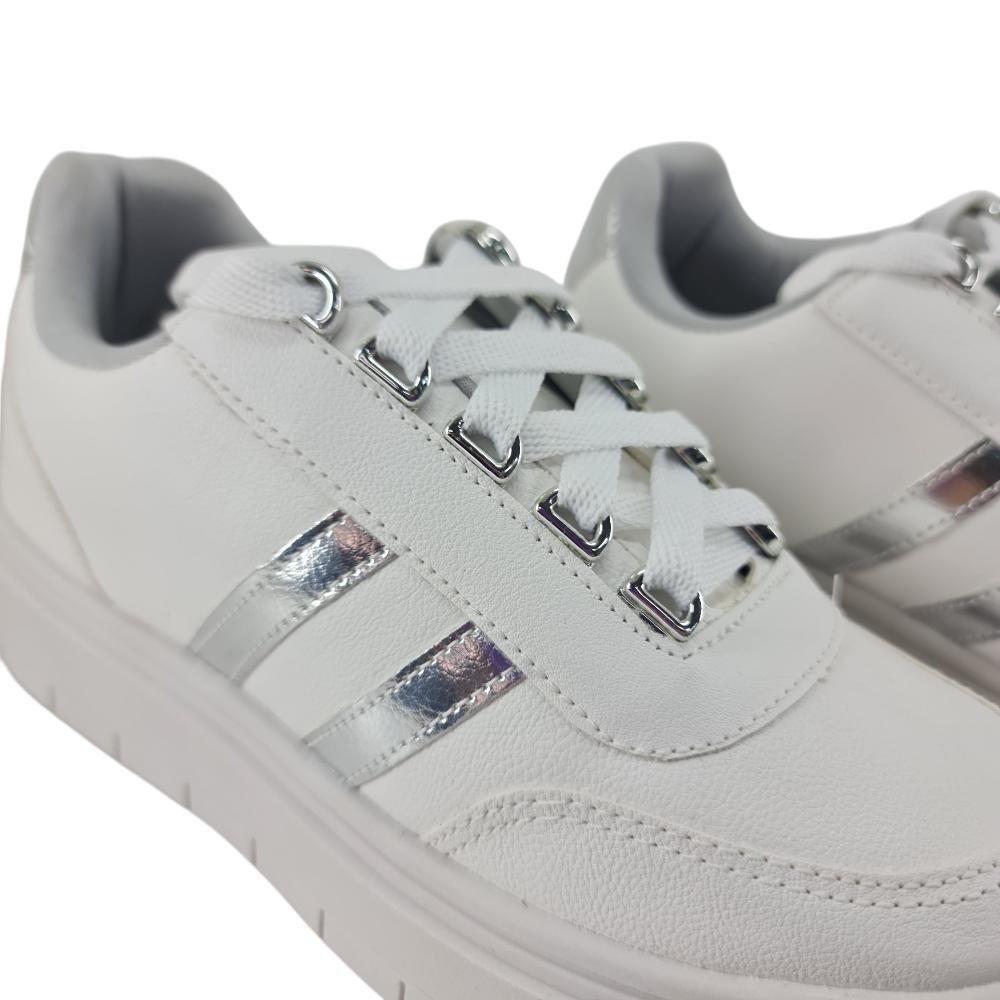 Tênis Energy é fabricado com material de excelente qualidade, possui palmilha macia e solado antiderrapante 4cm garantindo mais conforto e segurança para os pés. Esse modelo possui cadarço facilitando o ajuste e detalhe com listas prata que combinam com qualquer look seja no dia a dia ou em ocasiões especiais.