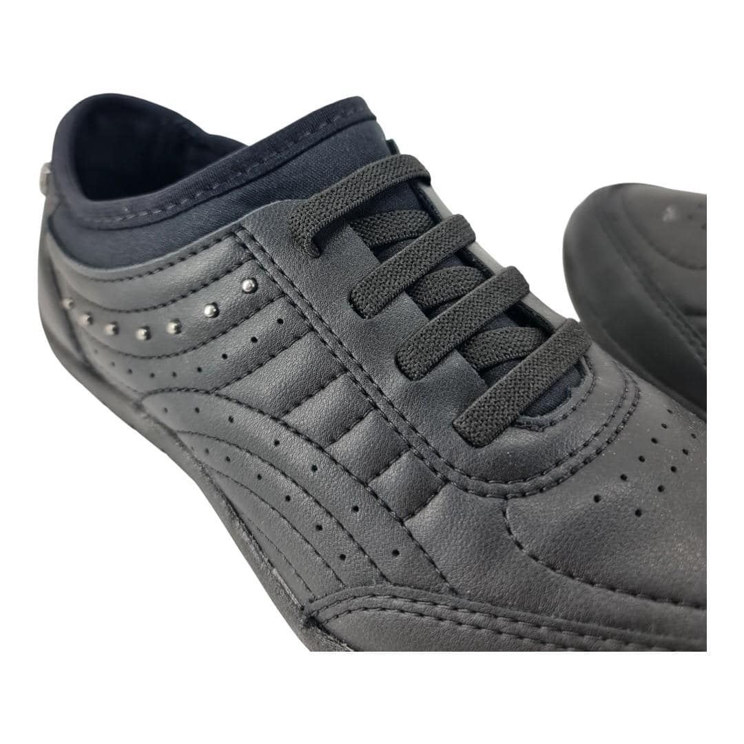 Com design moderno e detalhe em microfuros que auxiliam na respiração dos pés, esse modelo traz também aplicações discretas em tachas que dão um charme especial.