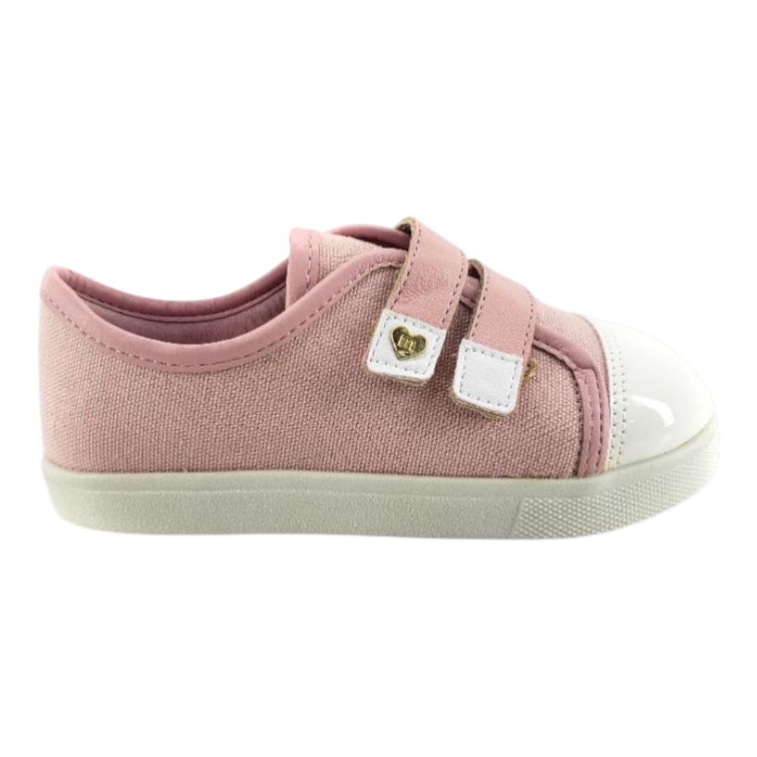 Delicado e confortável para acompanhar as pequenas no dia a dia! Com fechamento em velcro que facilita o calce, acabamento em tom rosa suave e biqueira reforçada para mais durabilidade. Ideal para escola e passeios, com muito estilo e praticidade.