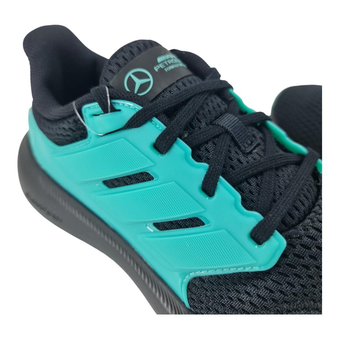 Com design moderno, ele combina cabedal em mesh respirável na cor preta com detalhes em azul turquesa, garantindo leveza e ventilação para os pés. O solado conta com a tecnologia Cloudfoam, que proporciona amortecimento extra e maciez a cada passo.